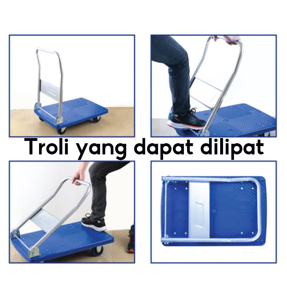 Detail Tool superman push cart troli roda 4, roda karet, berat 500kg, troli lipat, lantai plastik ABS tebal, troli multifungsi