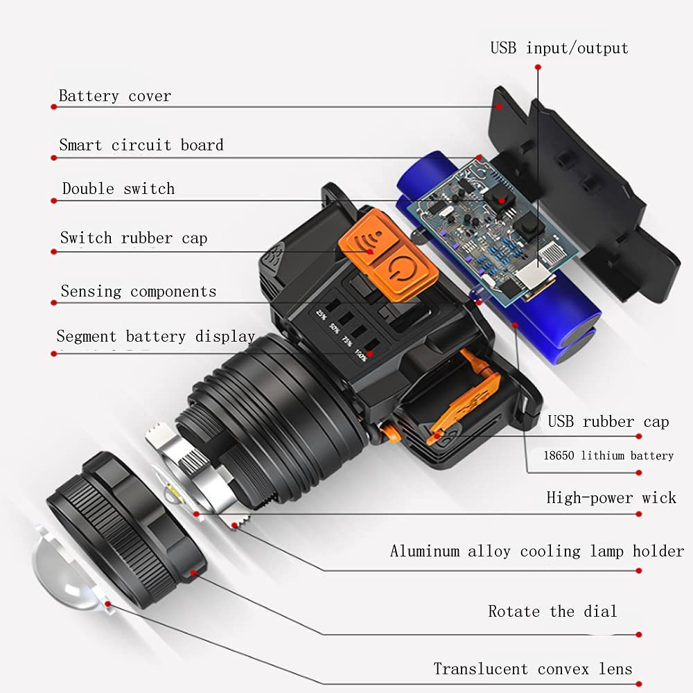 Detail TOOLBOX LED senter super terang, lampu depan luar yang kuat, lampu depan tahan air sensor gerak, senter berkemah senter kepala super terang K180