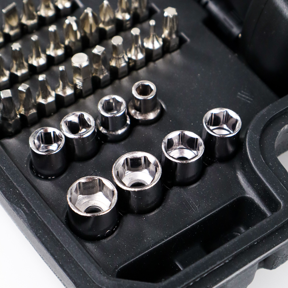 Bor obeng elektrik ini hadir dengan 45 jenis mata baut, sangat cocok untuk Anda yang membutuhkan berbagai jenis mata baut tanpa perlu repot membelinya secara terpisah. Obeng listrik menggunakan tenaga 4.8V.