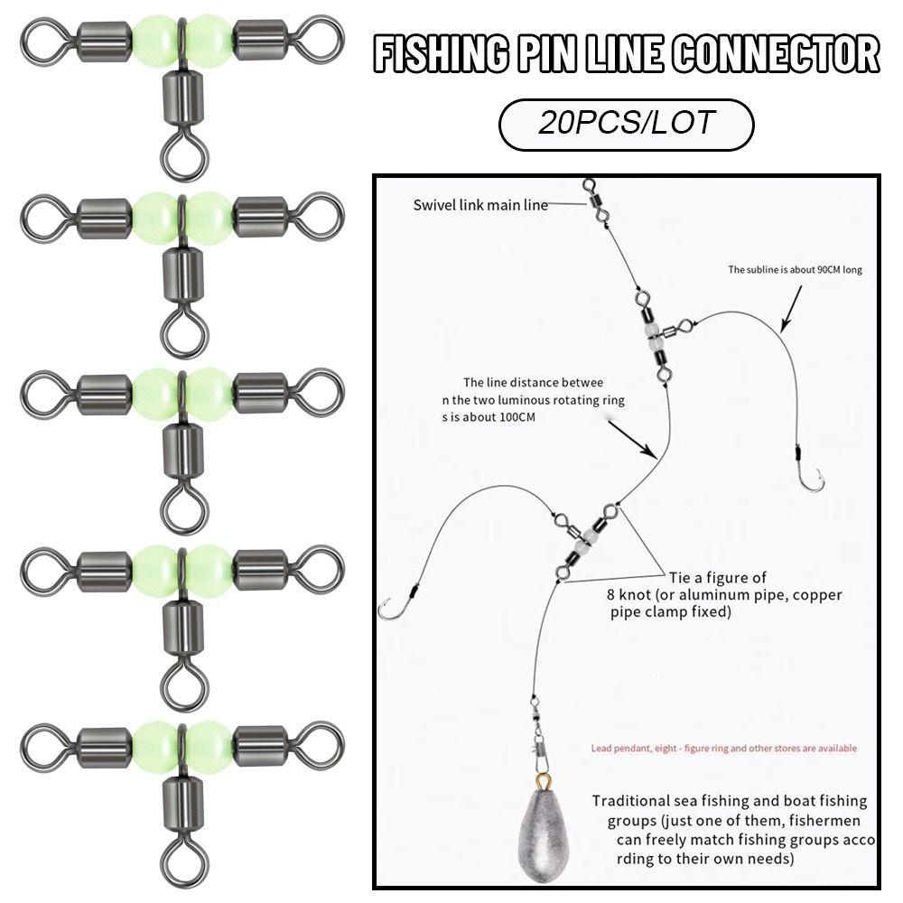 Putar Laras Pancing 20 PCS Konektor Pancing Pin Line Cincin 3 Arah Bergulir Trisula Wivel Bantalan Splitter Kuningan Barel Berkualitas Tinggi Tahan Lama Bercahaya