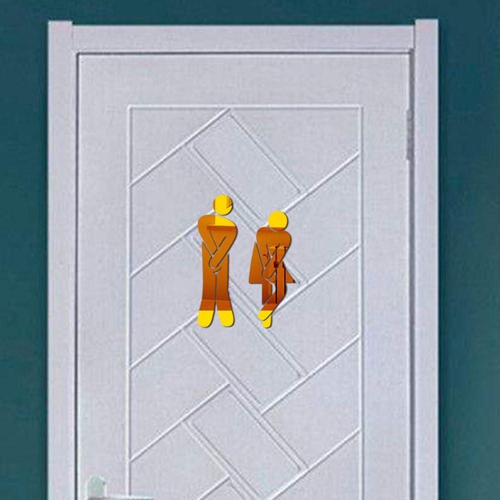 Perlengkapan Rumah > Dekorasi > Wallpaper & Stiker Dinding > Top 2PCS/Set Cermin Permukaan Decal 3D DIY Dekorasi WC Toilette Pintu Masuk Dinding Art Kamar Mandi Sign Poster