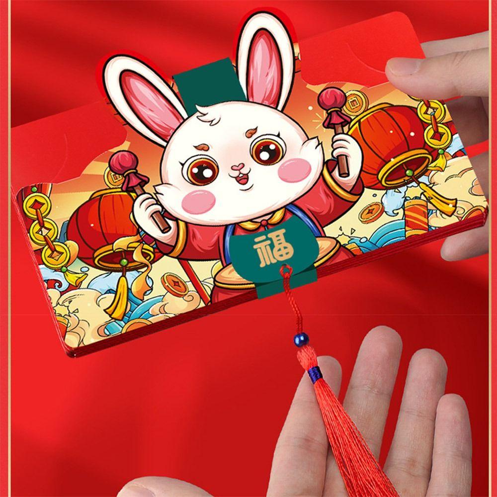 Amplop Merah Tahun Kelinci 5x Amplop Merah Kelinci Paket Amplop Tahun Baru Cina untuk Pesta Pernikahan Festival Ulang Tahun Perayaan Luas Penggunaan Berkat CNY Kreatif