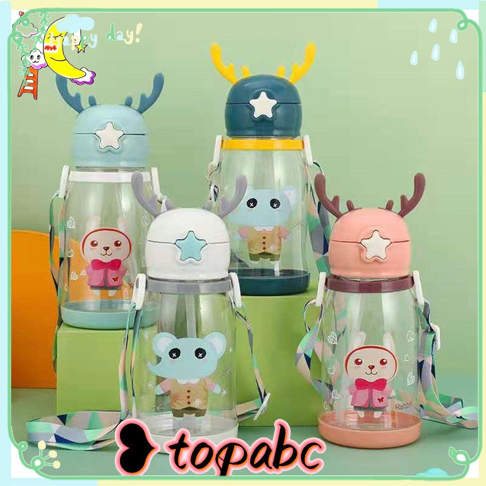 1 x Botol Air Tanduk Botol Air Jerami Piala Air Tanduk Lucu 600ML Kartun Perjalanan Portabel Olahraga Luar Ruangan Anak-anak