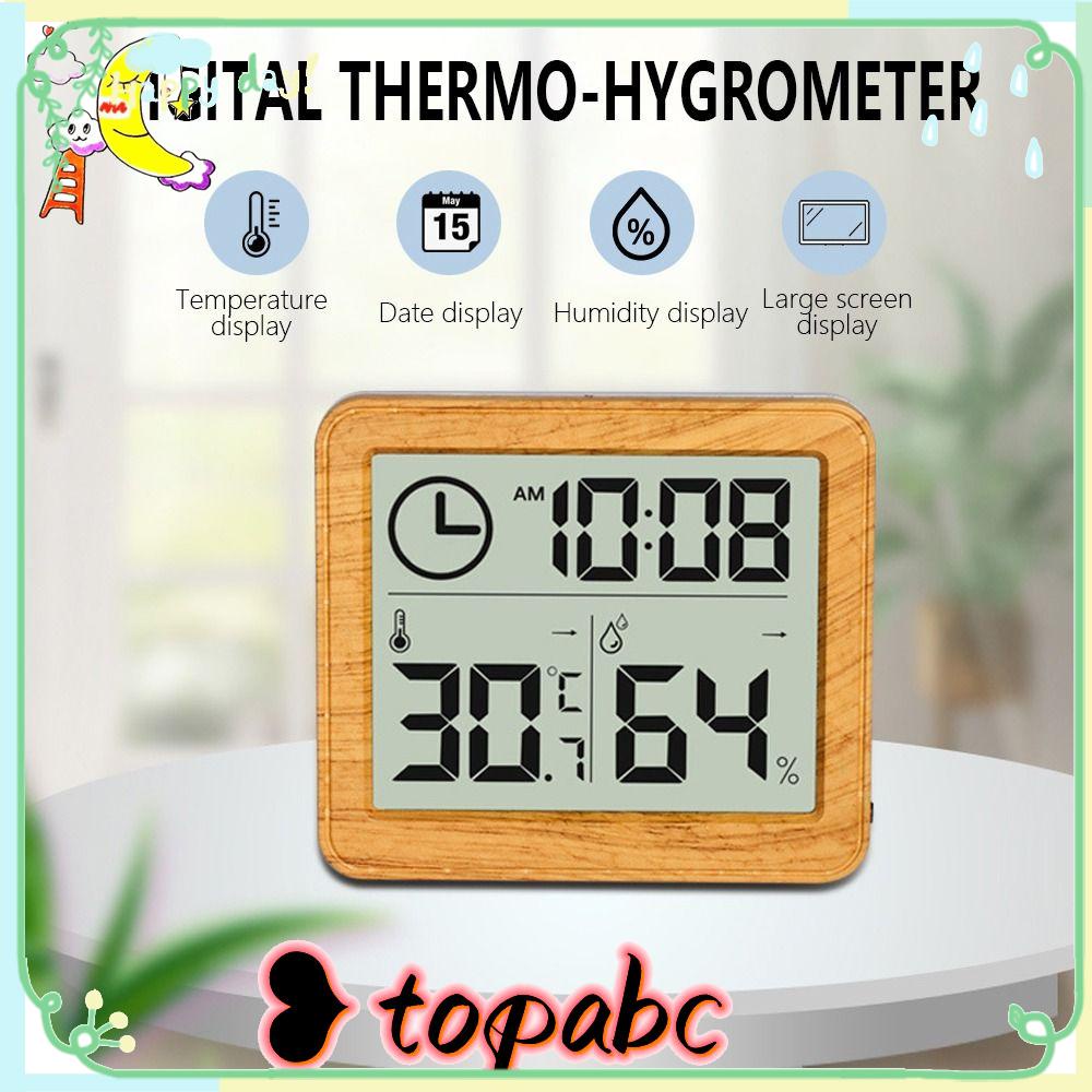 Termo-hygrometer Digital 1x Digital Termo-Hygrometer Termometer Elektronik Higrometer Desktop Jam LCD Tampilan Stesen Cuaca Dalam Ruangan Woodgrain Rumah Profesional Presisi Tinggi