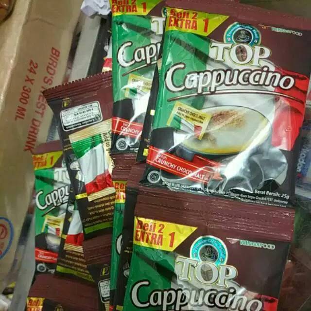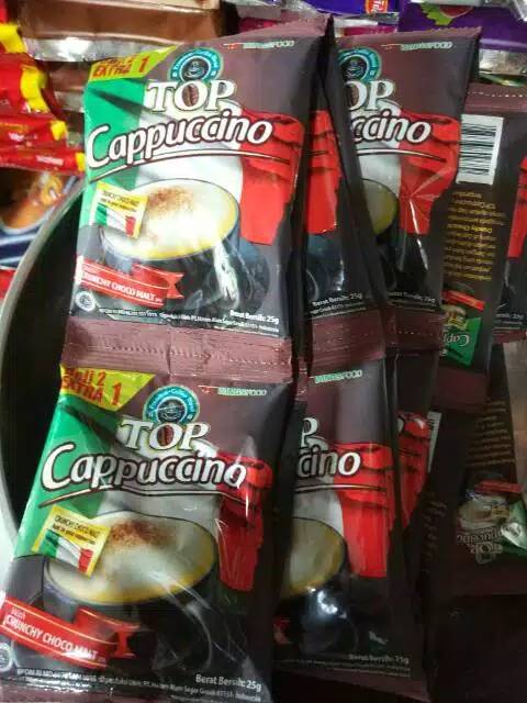 top kopi ada 5 varian rasa. dijual per pack isi 5pcs kecuali capucino 1pack isi 6pcs+bonus 3pcs.
