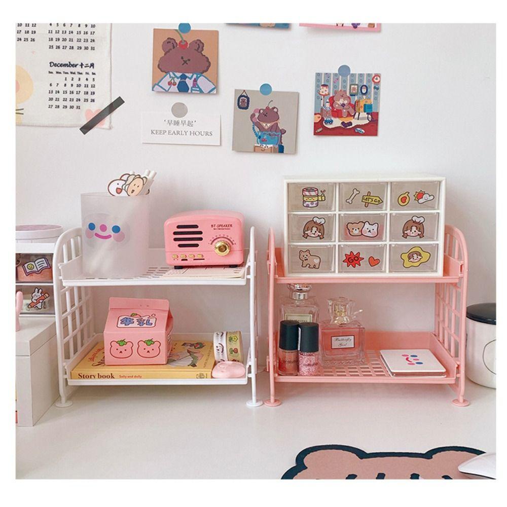 2. Perlu dicatat bahwa sedikit perbedaan warna harus dapat diterima karena cahaya dan layar. Rak Penyimpanan Perhiasan Penyimpanan Lapisan Ganda Alat Tulis Sekolah Lipat Ganda Kantor Rumah Tangga Desktop Berongga