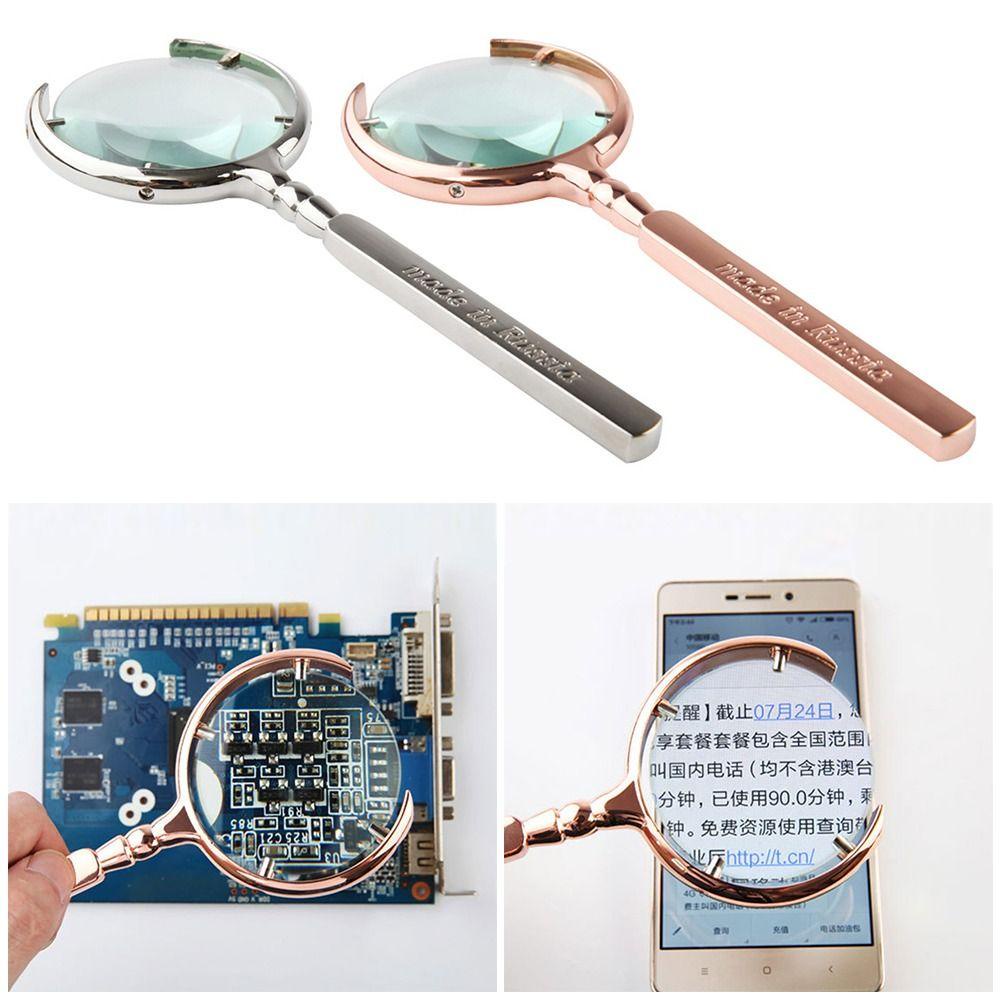 Pembesar Genggam 1 x Pembesar Genggam Pembesar Perhiasan Membaca Lensa Kaca Pembesar Mikroskop Pegangan Logam Genggam 6X HD Kualitas Tinggi Portabel Profesional