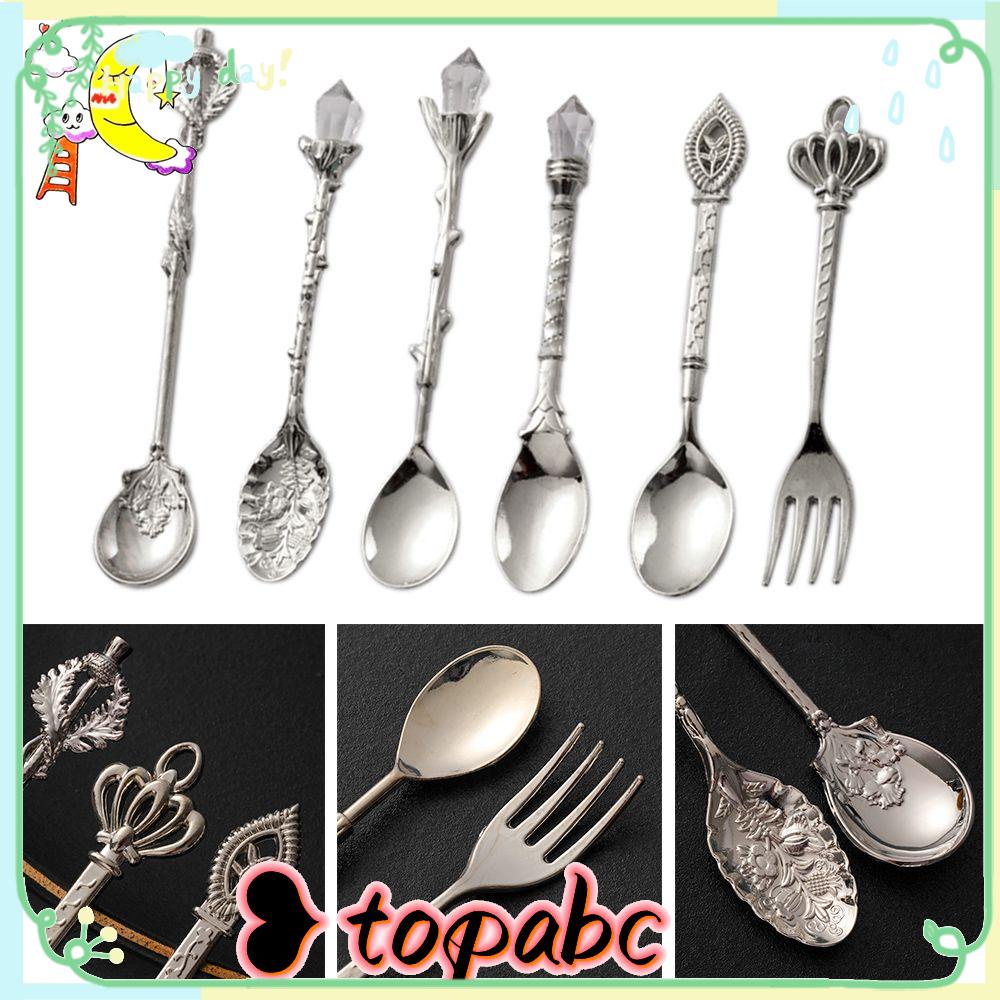 Harap dipahami bahwa warna mungkin ada sedikit chromatic aberration sebagai penempatan gambar yang berbeda. Sendok Vintage Garpu Sendok Teh Makanan Penutup Garpu Peralatan Makan Set Untuk Camilan Kopi Buah Emas Ukiran Logam Dapat Digunakan Kembali Mini Royal Style Alat Dapur 6pcs