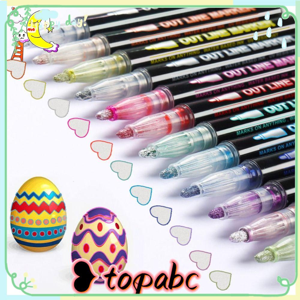 1 x Set Pena Garis Ganda (8/12/24 PCS) Pena Garis Ganda Metalik Spidol Highlighter Pena Outline Pena Kontur Ajaib Dicat Tangan Fluoresensi Pena Cat Air Grafiti Tangan Akun DIY Kantor Perlengkapan Sekolah