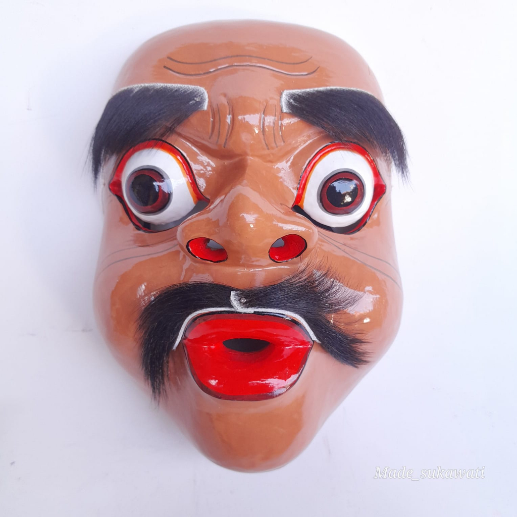 Seni Tari topeng merupakan seni sakral di bali yang dipentaskan ketika ada kegiatan adat,salah satunya Topeng Bondres Bali, Kerajinan Topeng Kayu Bali Motif jauk manis,bahan kayu kenanga,finishing cat lukis, ukuran panjang-+17cm, lebar -+14, tebal -+9cm.