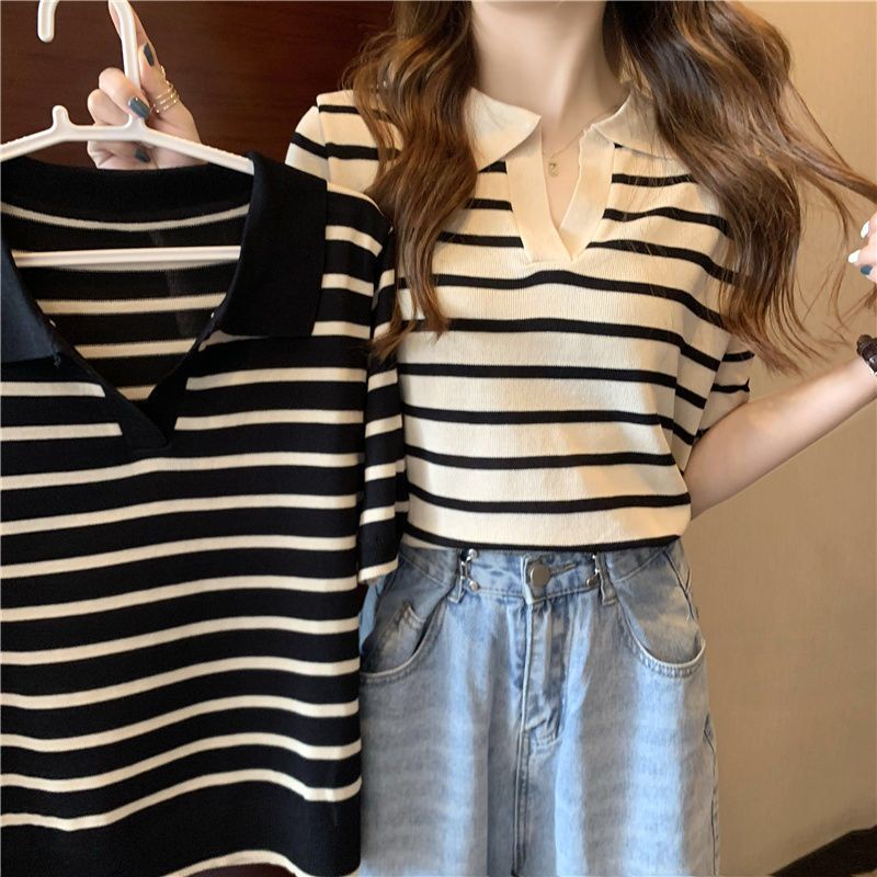POLOS Bahan : Knit + Polyester Detail : Dua bahan menyatu dijahit, Bahan rajut tebal dan sangat stretch Size : LD 80-94 cm, P 43 cm Berat : 200gram