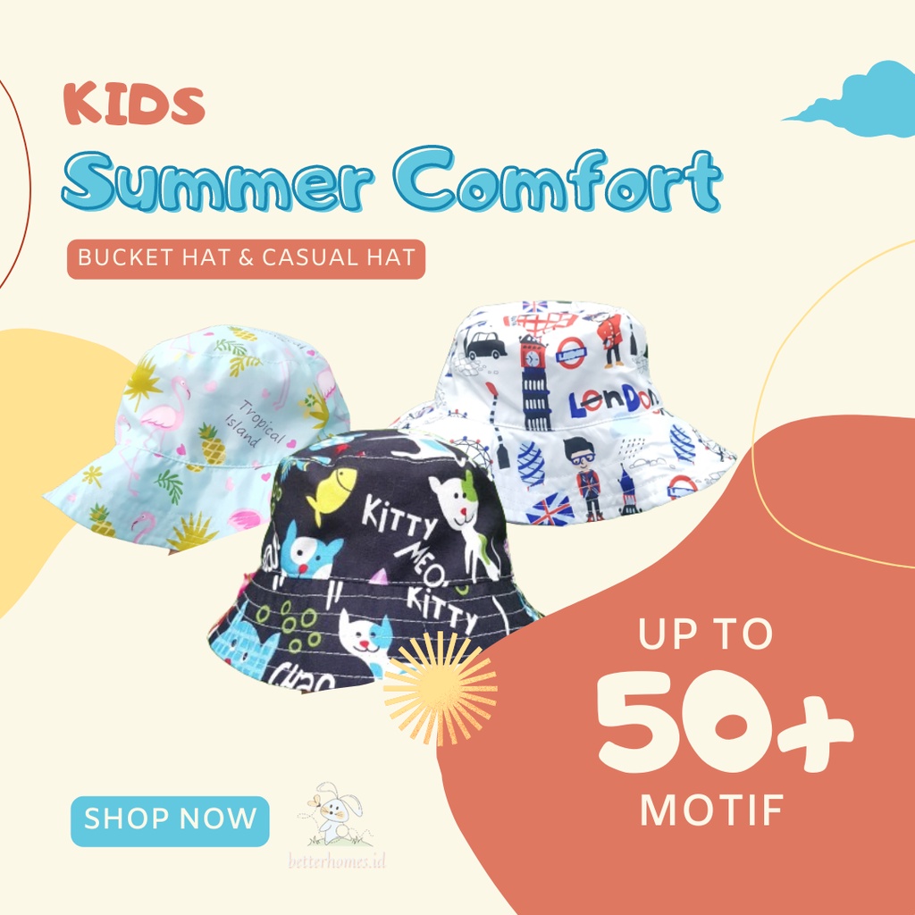Topi Anak Model Bucket dan Lebar Pelindung dari matahari dan cocok digunakan saat bermain atau bepergian Cocok untuk anak umur 2 - 10 tahun