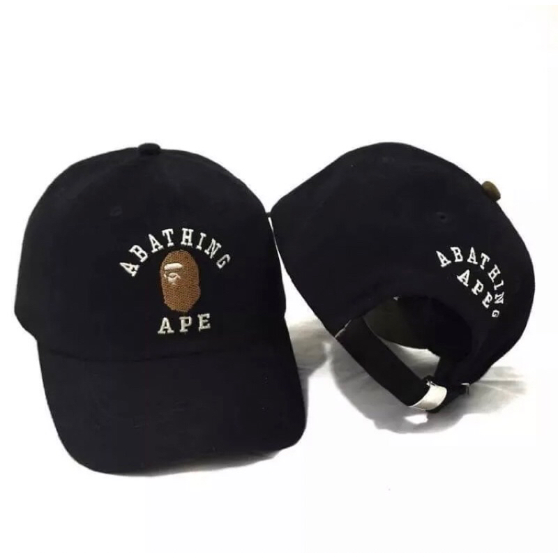 Detail Topi Baseball Casual Pria Olahraga Sport Fashion Keren Logo Custom Bordir Abating Ape Quality - Hitam loreng
