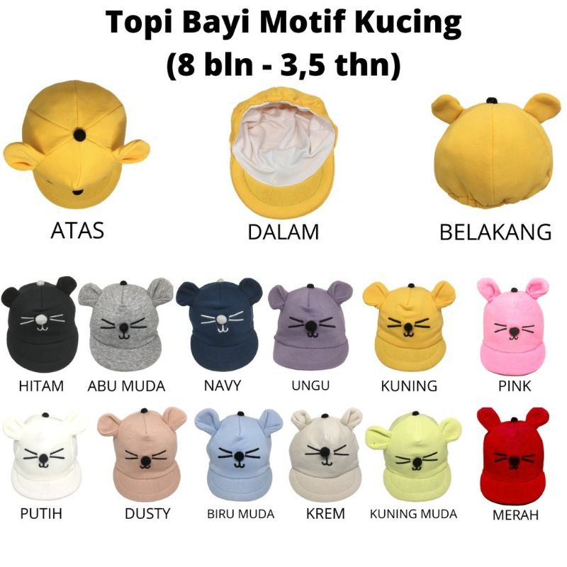 Ukuran lingkar kepala 40cm. Melar ke 45cm (terdapat karet dibagian belakang topi untuk menyesuaikan lingkar kepala anak)