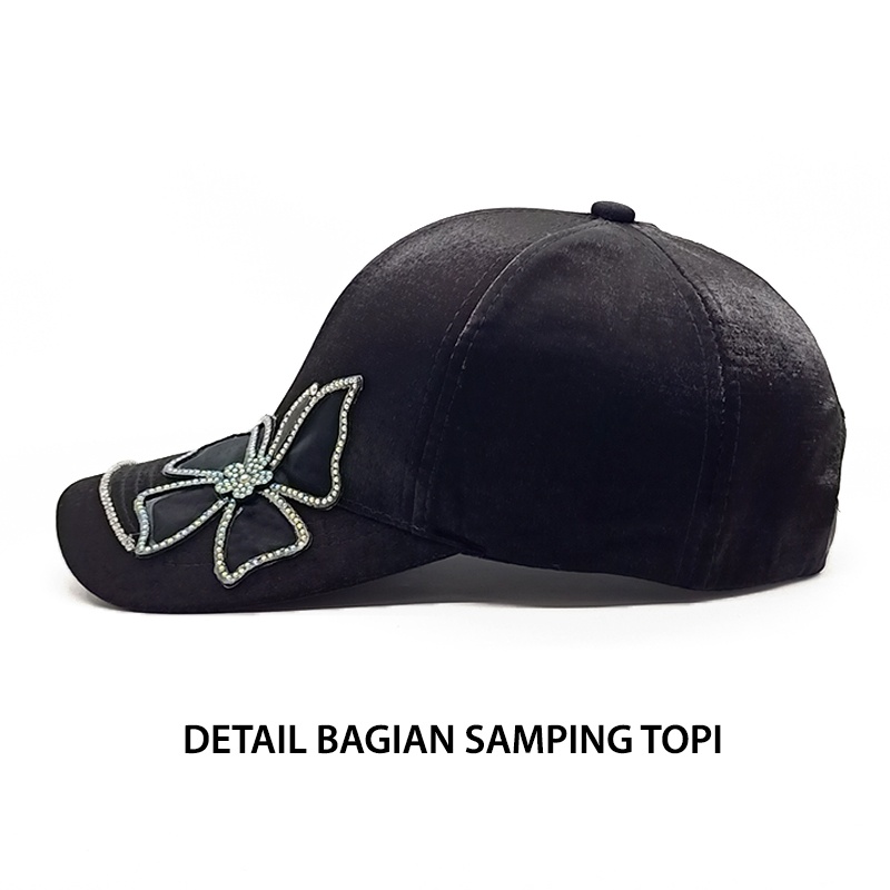 Detail Topi Baseball Pria Wanita Korea Motif Kupu Kupu Manik Kristal Bahan Import Gaya Jepang Trend BSBF