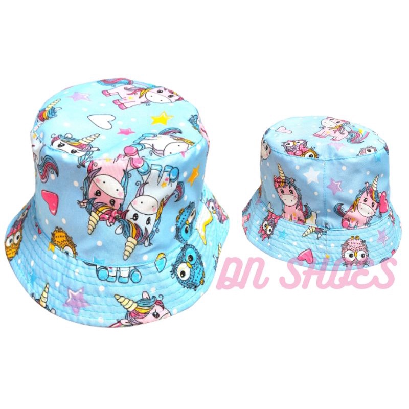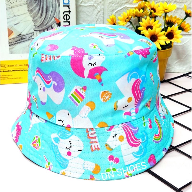 Detail Topi Bucket Anak Perempuan Karakter uniqorn kudaponi kucing hitam