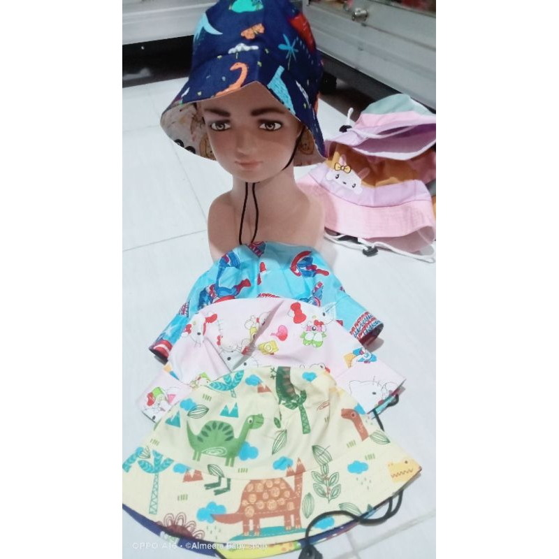Topi Bucket bolak balik + tali / Topi Bucket anak karakter