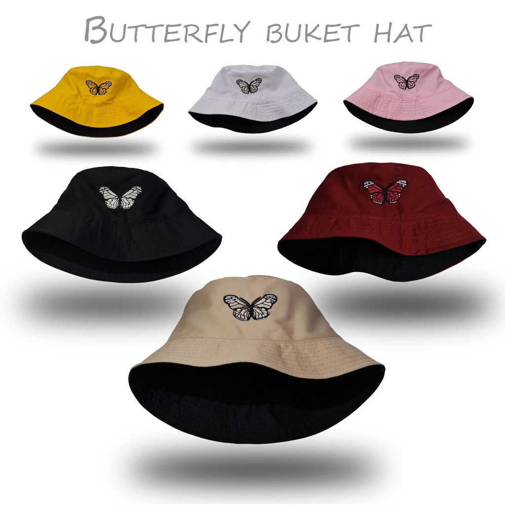 Topi bucket hat bordir Butterfly / Bucket Perempuan Korea Bordir kupu kupu / Arshila_fashion