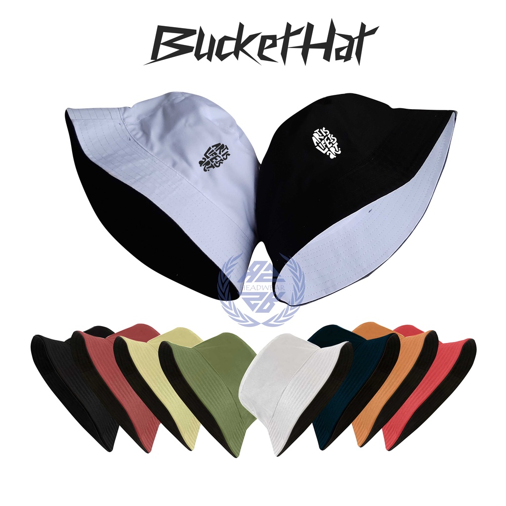 Deskripsi : Mode : Bucket Hat Bahan : Katun American Drill Sablon : Poliplex PVC sangat kuat dan tahan lamaTidak Mudah Luntur Meski DI Cuci Berkali Kali Ukuran : Dewasa (12th-100th) Warna : -hitam-hitam -army-hitam -marun-hitam -mustard-hitam -army-mustard -cream-hitam -navy-hitam
