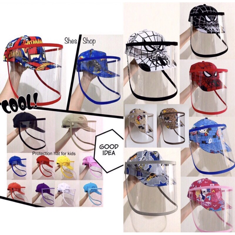 Detail Topi corona anak face shield warna warni premium / Kids Protection Hat / topi mika anak motif