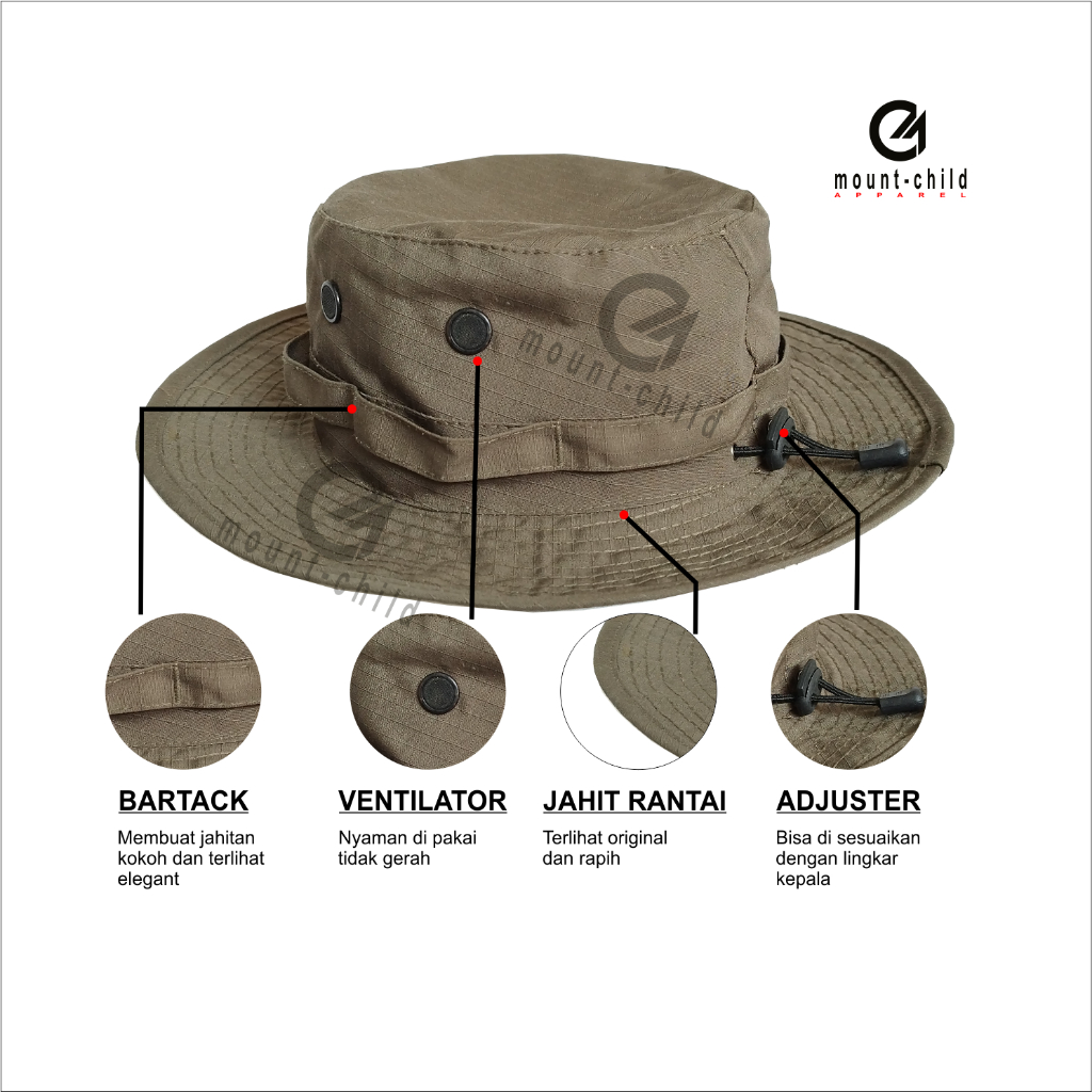 Spesifikasi Topi Rimba Mountchild.