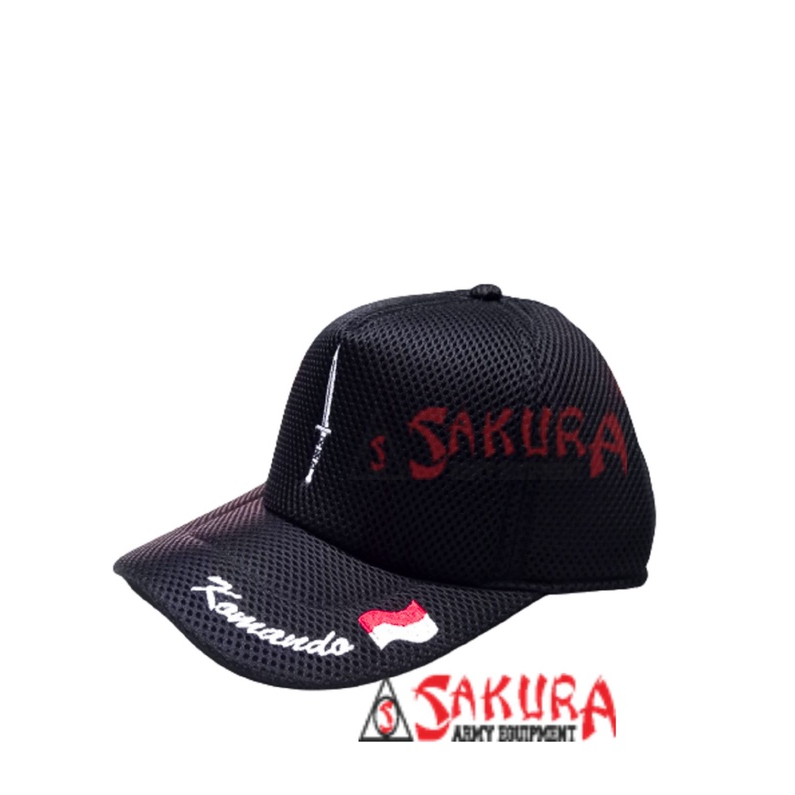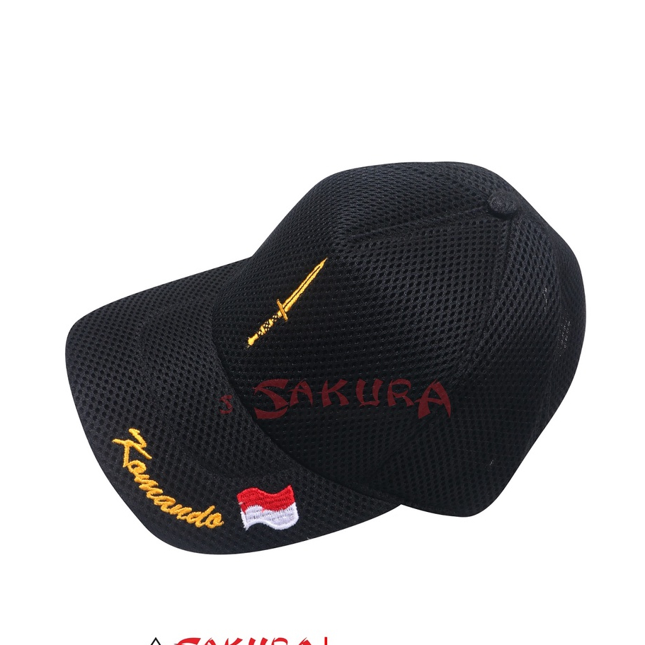Detail Topi Jaring Komando Logo Kuning Hitam Merah Putih