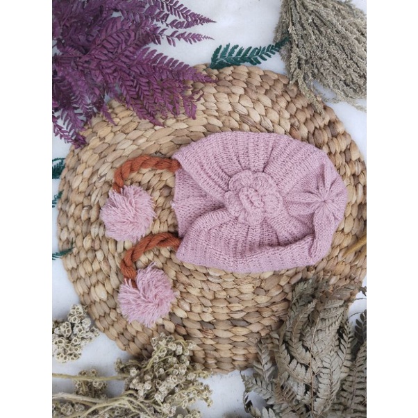 Fashion Bayi & Anak > Aksesoris Bayi & Anak > Topi > Topi Kupluk Bayi Kepang Turban Bunga