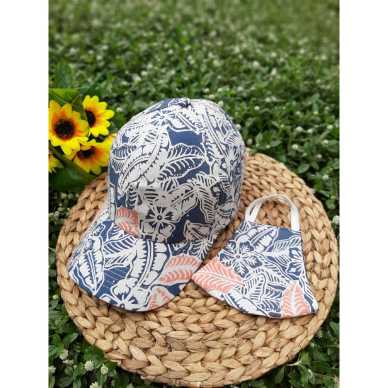 Topi + Masker Batik | Topi Baseball Batik | Free Masker Motif Sama