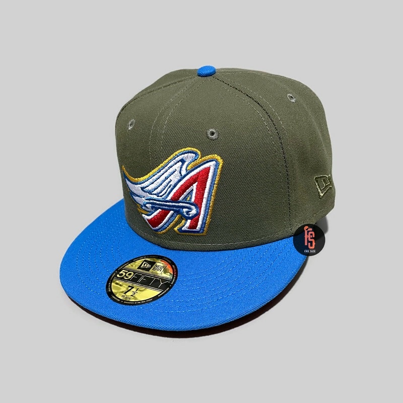 Detail TOPI NEW ERA ORIGINAL 5950 50TH ANAHEIM ANGELS OLIVE SKYBLUE UV RED