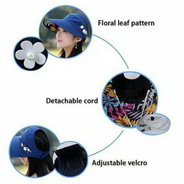 Detail Topi pantai lipat/topi visor perlindungan UV