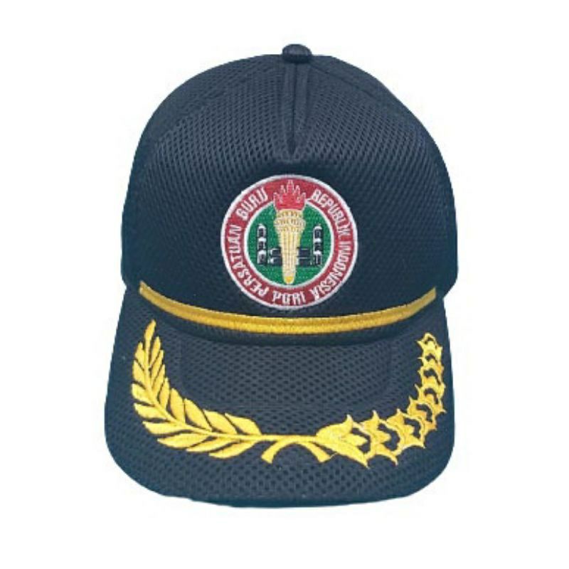 Topi logo PGRI padi kapas list. Bahan jaring Doublemess Bordiran padi kapas list Ukuran dewasa belakang ada rel plastik pengatur ukuran besar kecilnya bila mau pakai nama di samping nya kami juga bisa menambahkan untuk nama nya..