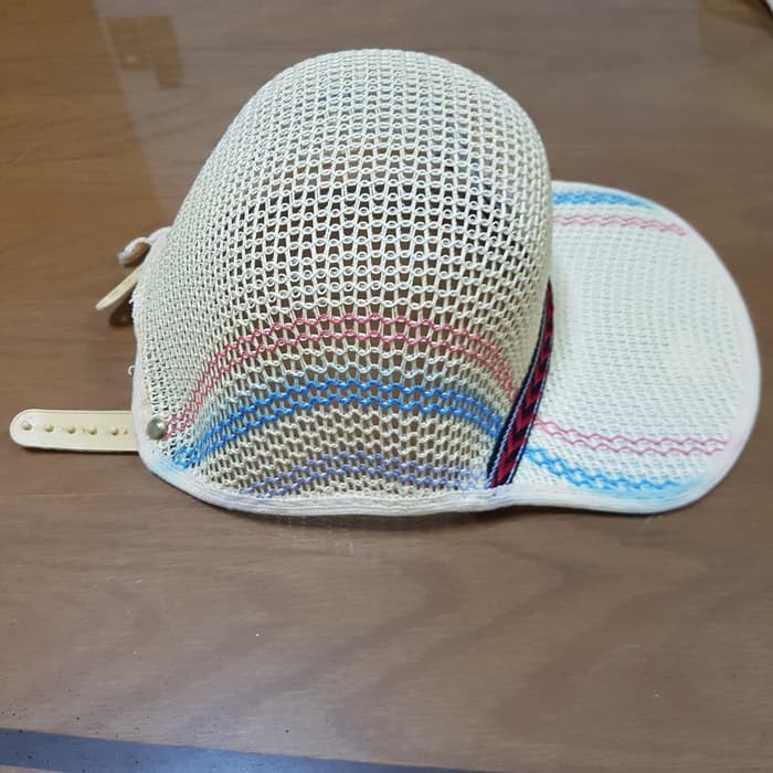 Topi Plastik ini di design seperti topi trucker, dengan diameter kurang lebih 18cm dan mempunyayi settingan ikatan di bagian belakang kepala untuk menyesuaikan ukuran kepala yang berbeda. Sangat cocok untuk pemakaian saat beraktifitas outdoor karena bagian atas topi yang berlubang lubang jadi membuat hawa panas gampang keluar. Tersedia dengan berbagai warna kain di atas topi seperti merah, kuning dan hijau.