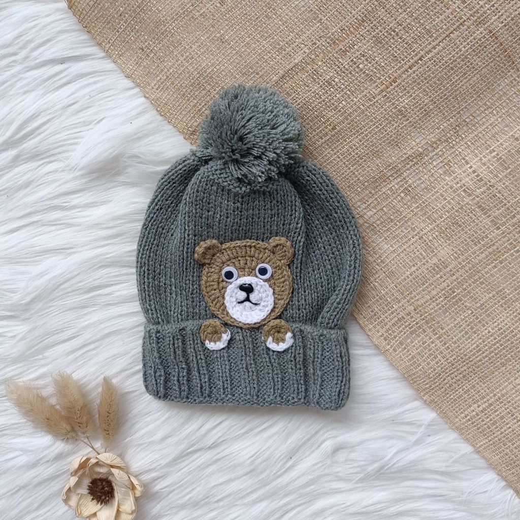 Your browser does not support the video tag.Video perkenalan produk Topi rajut bayi pompom motif bear 0-24bulan. Sumber: Shopee.