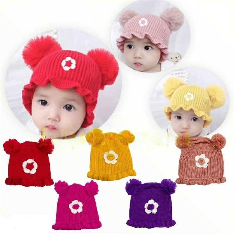 Detail Topi rajut BUNGA POM POM anak bayi perempuan