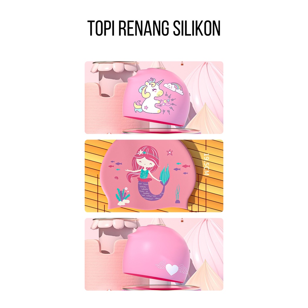Detail TOPI RENANG SILIKON anak murah lucu mermaid unicorn love