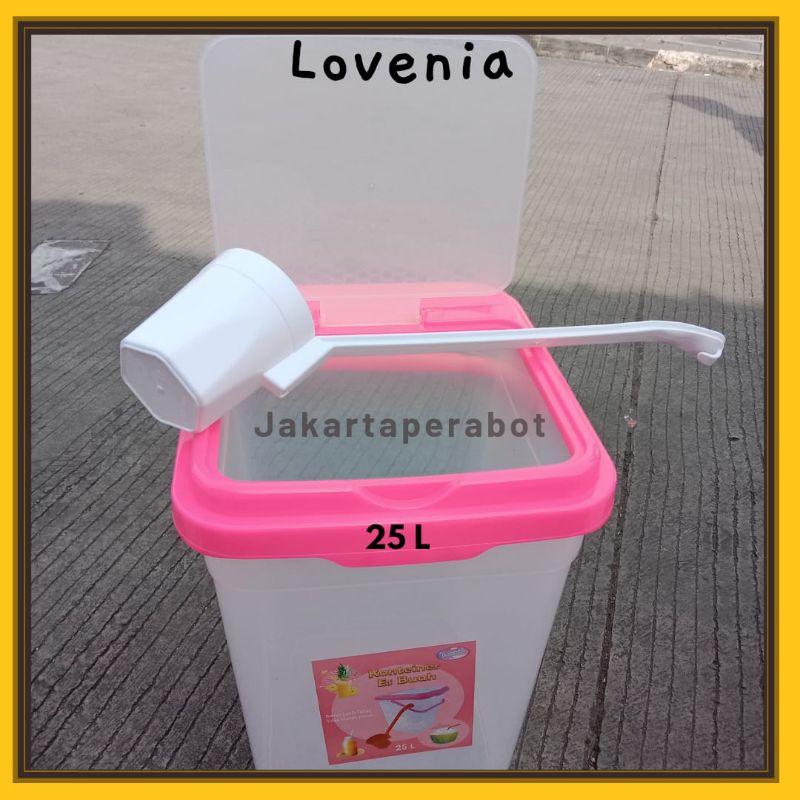 Toples Air + Gayung 25 Liter (LOVENIA) ———————————————————— -Untuk tempat air es, es Jus, es kelapa dll -Bahan plastik tidak berbau dan baik untuk minuman dan makanan. -Di lengkapi dengan tutup toples yg terkait untuk memudahkan membuka dan menutup toples. ——————————————————————— Merk : Lovenia Volume : 25 Liter Warna : Pink, Hijau, Ungu ——————————————————— Tunggu apa lagi? yuk check out 🥰🥰