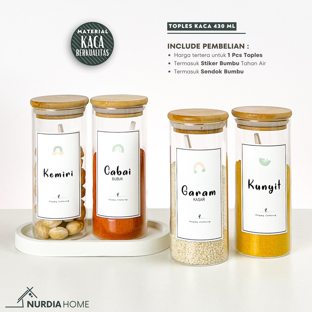 Detail Toples Kaca 430 ml (Tempat Bumbu Kaca / Toples Bumbu Kaca / Botol Bumbu) by Nurdia Home - JG02