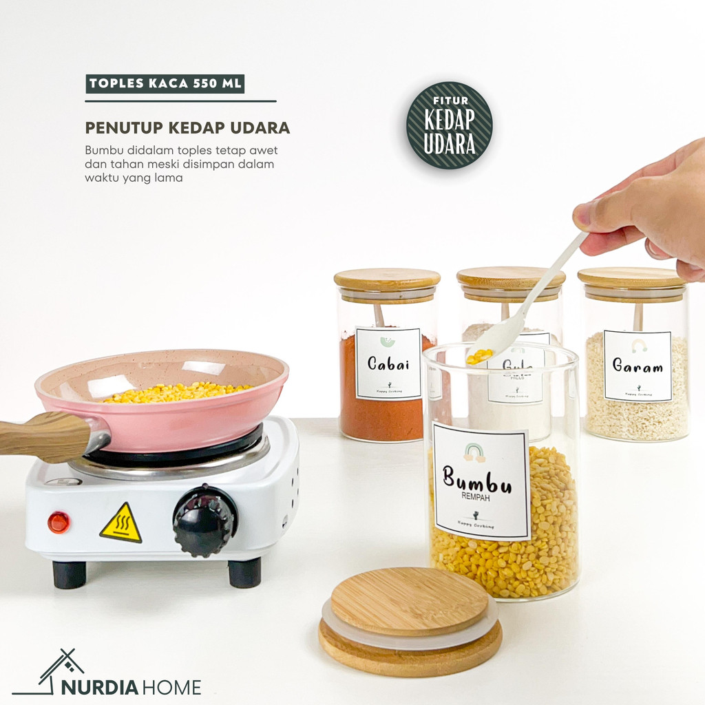 Detail Toples Kaca 550 ml (Tempat Bumbu Kaca / Toples Bumbu Kaca / Botol Bumbu) by Nurdia Home - JG04