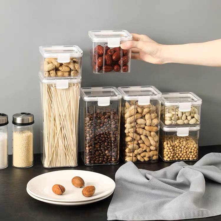 Perlengkapan Rumah > Peralatan Dapur > Tempat Penyimpanan Makanan > Toples Kotak Bening Plastik Penyimpanan Makanan Kedap Udara Snack Cereal Kue Kering Nastar Food Storage Jar Container - HW096
