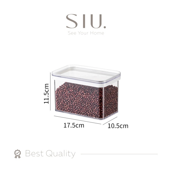 Fitur: - Menggunakan sistem Press-Locked dengan silen sehingga makanan yang tersimpan 100% kedap udara - Mudah dibersihkan - Awet dan tahan lama - Kokoh dan tidak mudah pecah - Dapat digunakan untuk menyimpan gandum, beras, snacks, cookies, cereal, biji-bijian, dan lainnya - Dapat mudah ditumpuk dan pasti tidak jatuh
