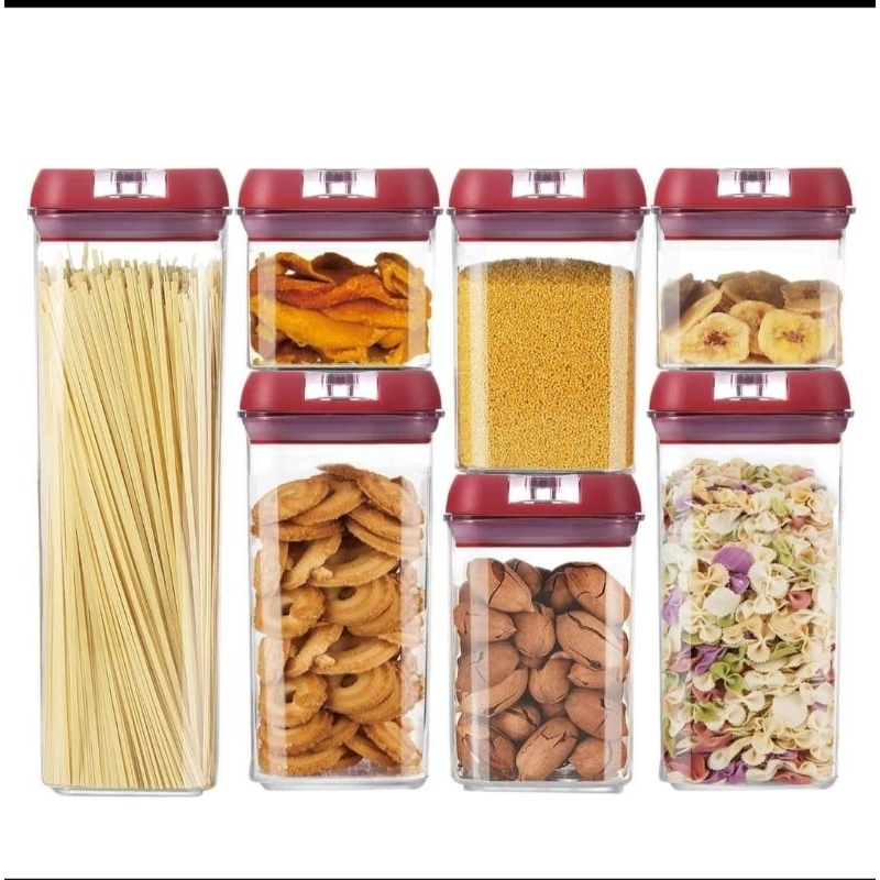 Perlengkapan Rumah > Peralatan Dapur > Tempat Penyimpanan Makanan > Toples penyimpanan makanan kedap udara wadah penyimpanan bahan plastik mica 1 set isi 7 toples