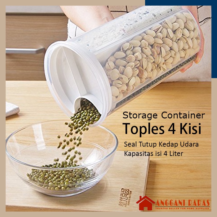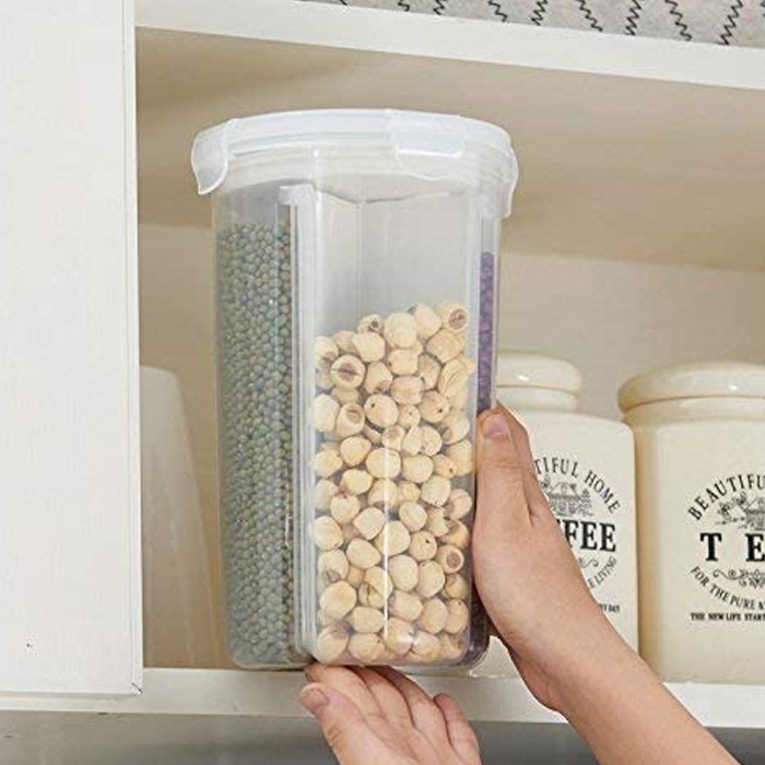 Perlengkapan Rumah > Peralatan Dapur > Tempat Penyimpanan Makanan > Toples Plastik Kotak Tempat Penyimpanan Beras Sereal Kacang Snack Kedap Udara 4 Kisi