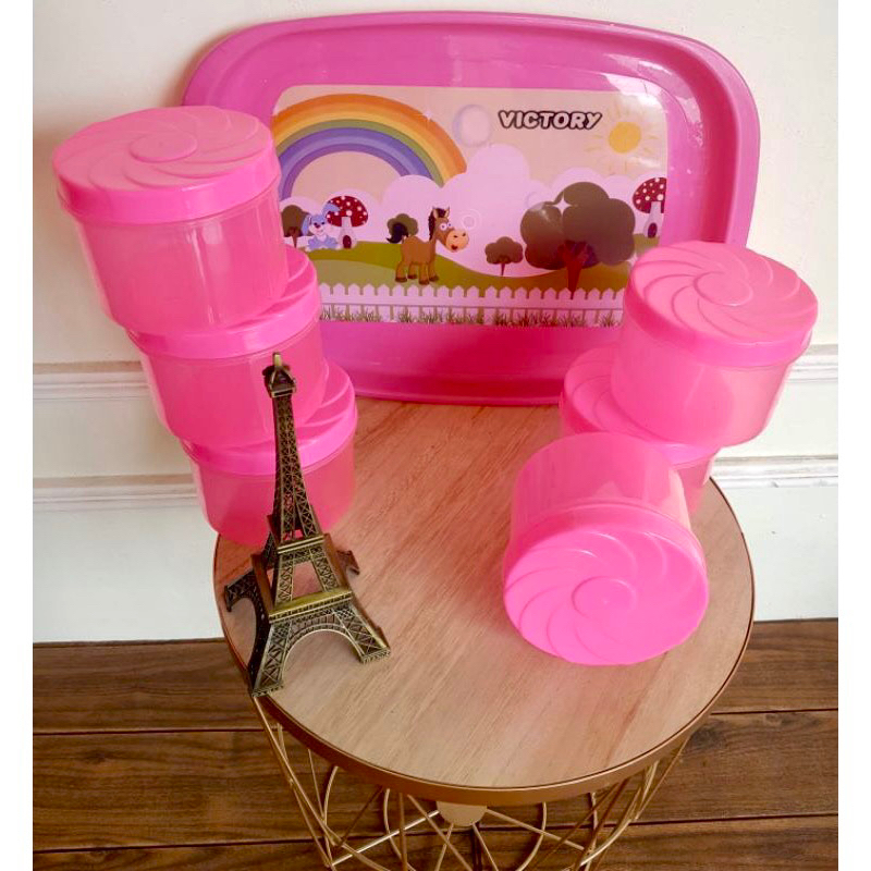 Perlengkapan Rumah > Peralatan Dapur > Tempat Penyimpanan Makanan > Toples Plastik Nampan Bulat - Tempat Penyimpanan Makanan Kue Kering - Toples Nampan Set Serbaguna Free Nampan