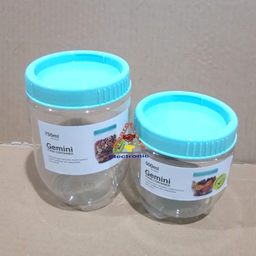 Toples Kue roti serbaguna 2 PCS / 2 Buah GEMINI FOOD CONTAINER satu pasang Tempat Wadah Toples Makanan Food Grade 700ml dan 500ml