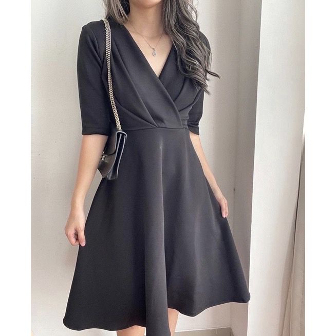 Detail Toply shop Dres Audi korean style elegant scuba / Dres wanita pesta scuba premium