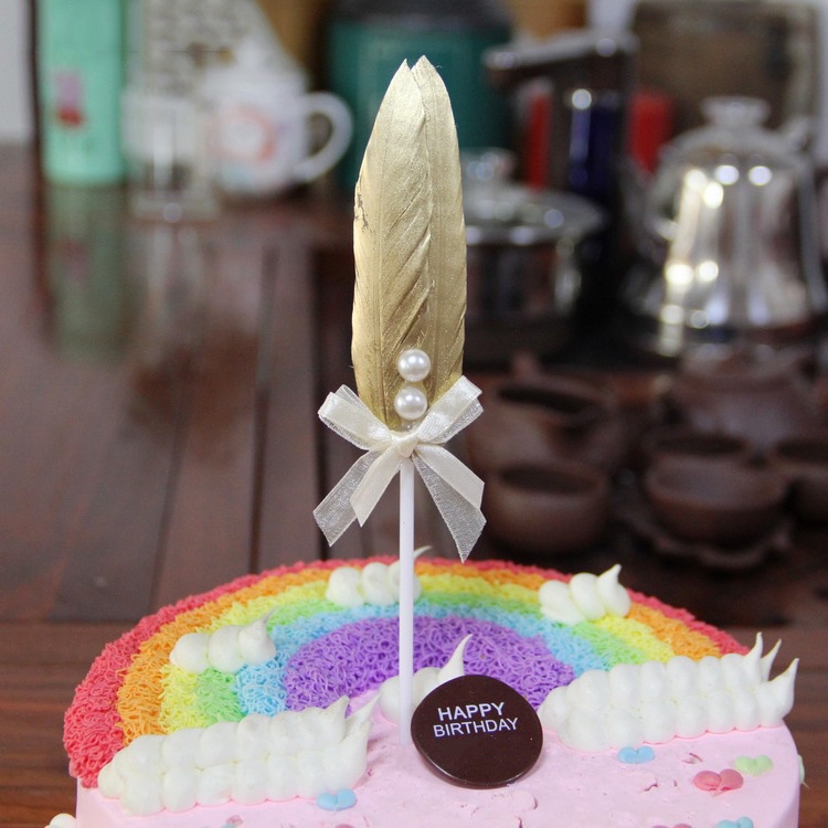 Detail Topper Kue Bentuk Sayap Bulu Warna Emas Untuk Dekorasi Ulang Tahun Baby Shower