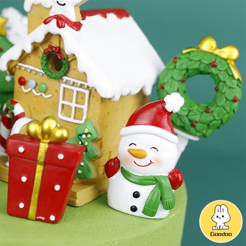 Detail Topper Kue Desain Elk Gift Box Shape Merry Christmas Bahan Resin Untuk Dekorasi -Doo