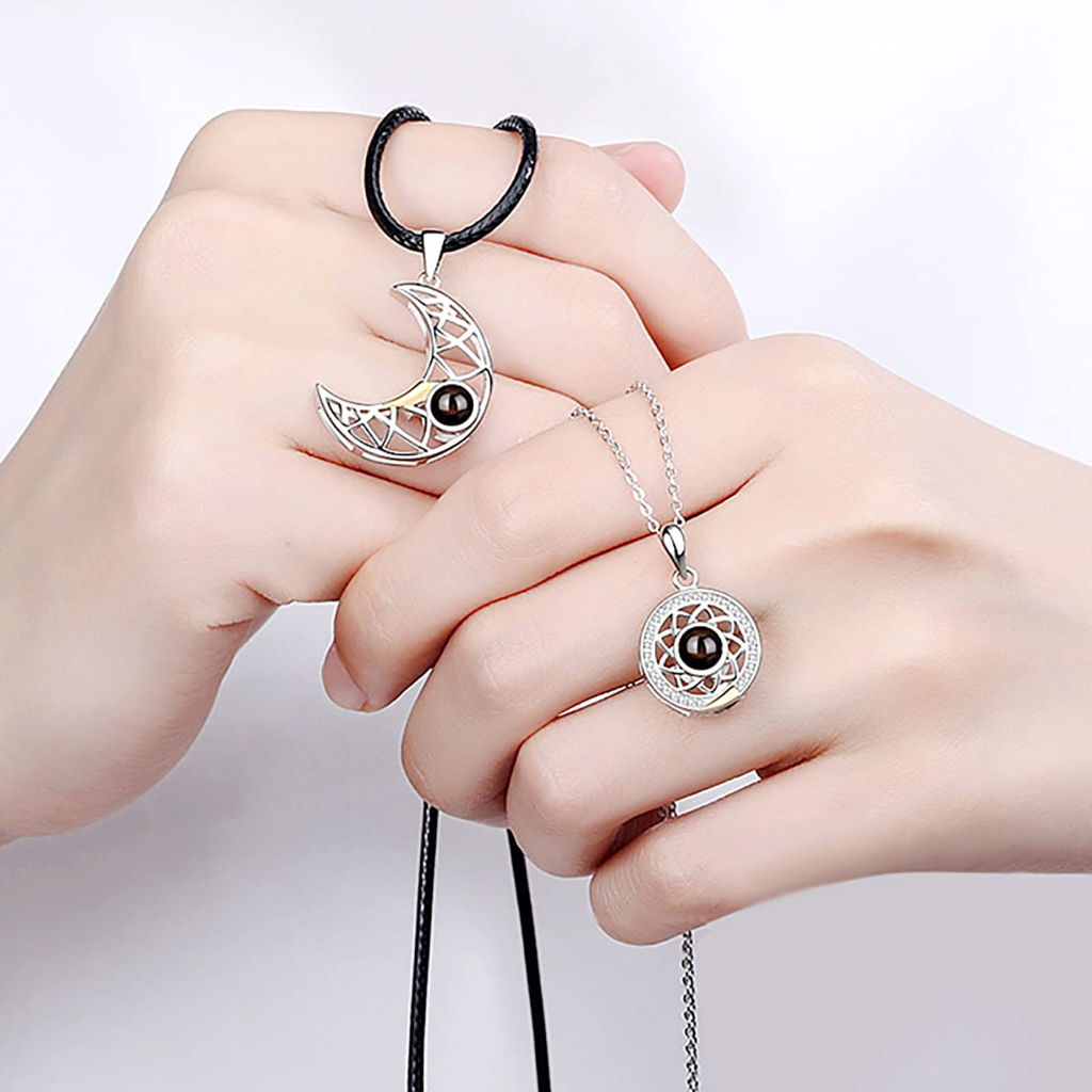 Kalung Pasangan: Kami mendesain kalung itu sebagai kalung magnet matahari dan bulan, yang artinya apapun yang terjadi, seberapa jauh darimu, aku akan selalu mencintaimu dan berada di sisimu. Kalung ini cocok untuk semua gaya berpakaian. Hadiah Hubungan yang Bermakna: Kalung yang cocok untuk pasangan adalah pilihan hadiah yang bagus untuk Pernikahan, Tanggal, Hari Valentine, Ulang Tahun, Ulang Tahun, Natal, Halloween, atau Wisuda.