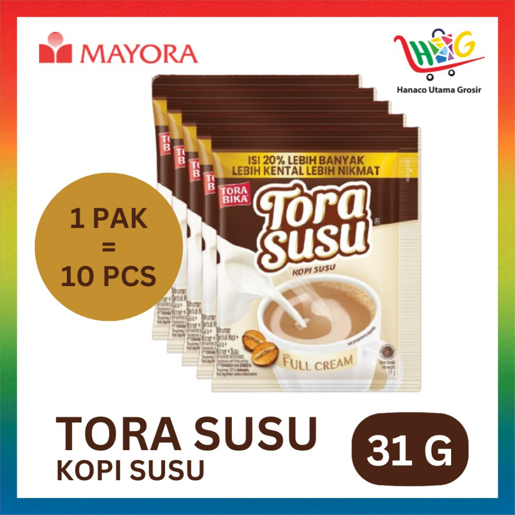 Tora Susu adalah paduan kopi Arabica dan Robusta ditambah gula serta diperkaya dengan susu full cream. - Nikmati mantapnya kopi, gurihnya susu full cream di setiap sajian Tora susu untuk hari-hari Anda.