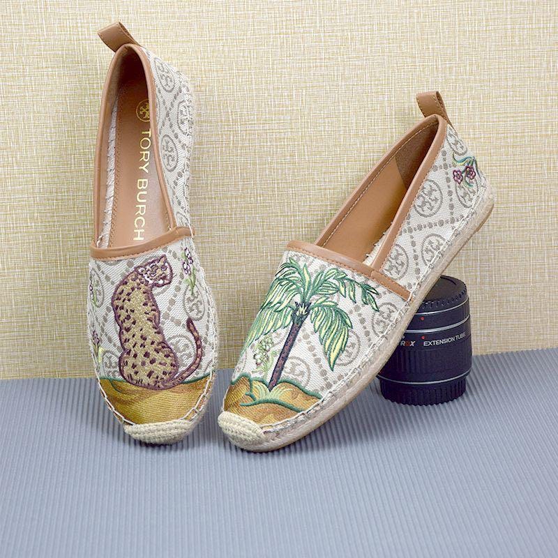Sepatu Wanita > Sepatu Flat > Rounded Toe Flats > Tory Burch Embroidered Fisherman With Motif Tiramisu